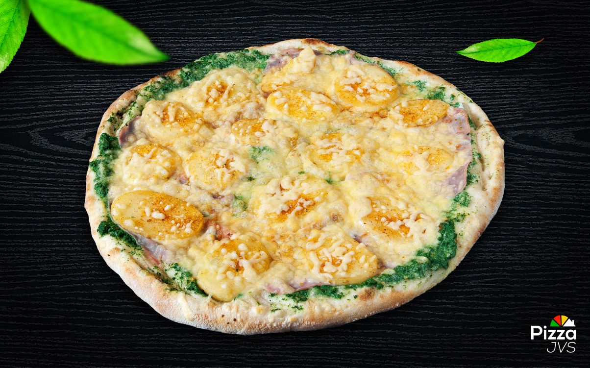 smetana, špenát, česnek, bramborové plátky, šunka, sýr
